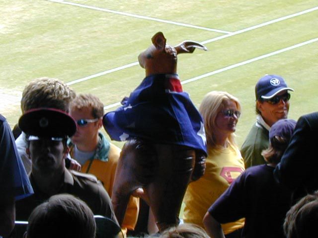 The weather was perfect. At noon, Goran Ivanisevic and Pat Rafter came on court and battle commenced. It didn’t end until three hours later and only after Goran had blown four match points and then with the crowd nearly in tears, finally took the last set 9-7.