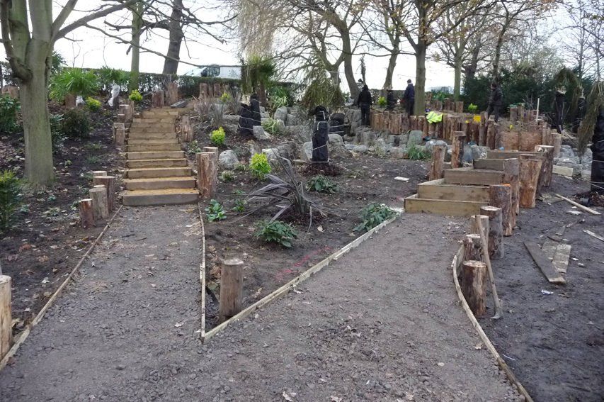 Matthew Childs was recruited as the designer of the total project and it is through his imagination that we now have something quite special to add to the work done by Capability Brown. The project received financial support from Viridor Credits, The SETA Trust and the London Borough of Merton. Work was delayed during 2010, but got well underway in the autumn and in early December, the planting was underway in what has been described as one of the coldest winters ever seen in Wimbledon. Fortunately great care was taken in planting, particularly the New Zealand tree ferns, and every specimen survived to come into full bloom during the following spring. The contractors were Visible Changes, who sadly haven't survived the recent recession, and the project manager was David Leed.